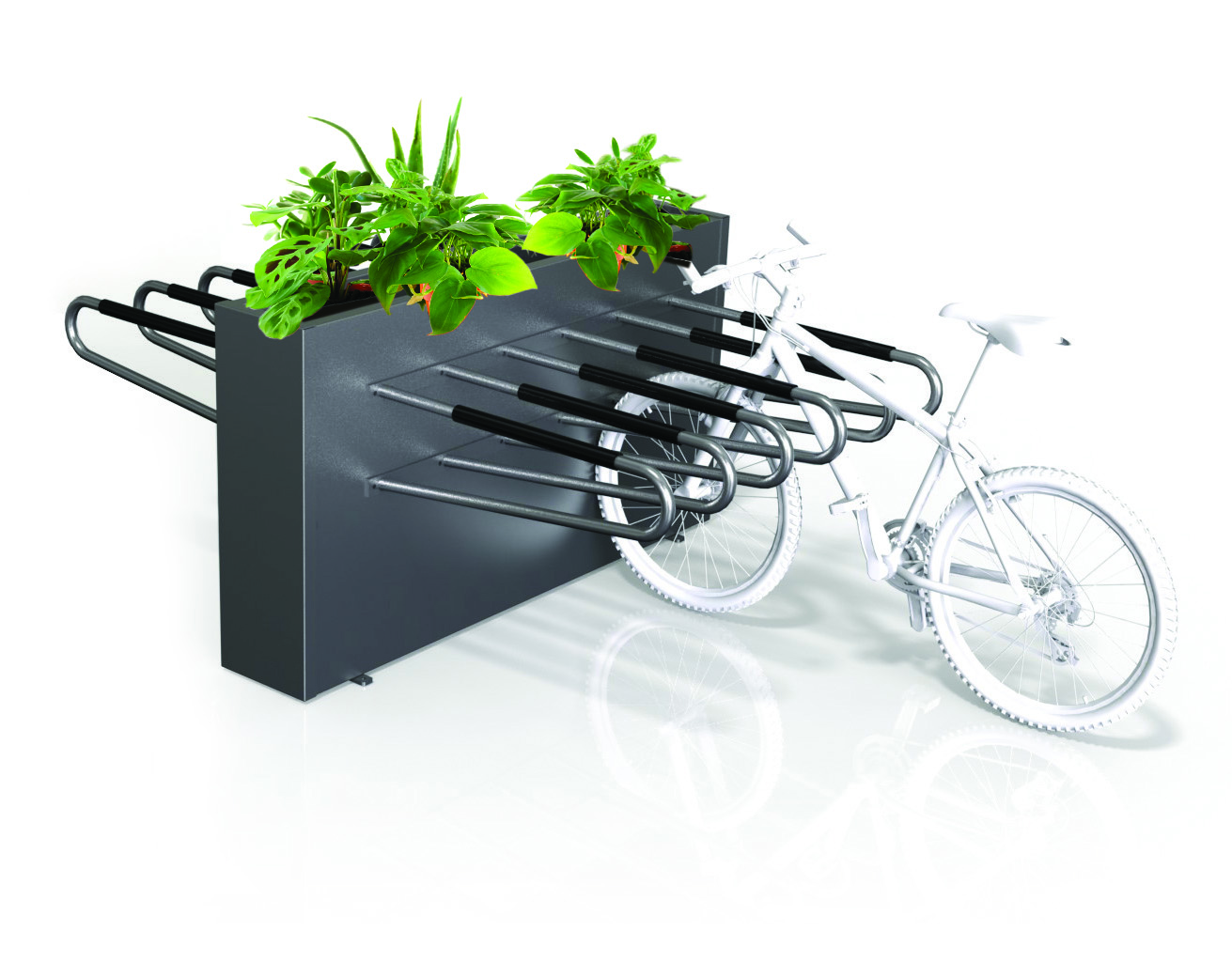 The Planter Box bike rack is a way to introduce bicycle parking and vegetation to public spaces. Choose your own flora from local natives to creepers that can cover the whole rack. Aesthetically you can green your public spaces while providing bike parking facilities that put cyclists into the middle of public spaces.